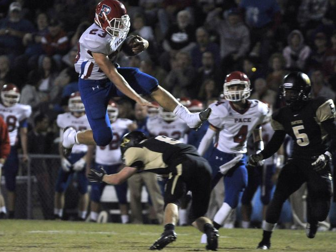 Long before the football players ever take the field under the stadium lights, the team takes the town. Early in the morning, at gas stations and coffee shops and grocery stores, people are sporting “Pace High School Football” tee shirts. There is an unspoken understanding that the game is a common destination later that evening.